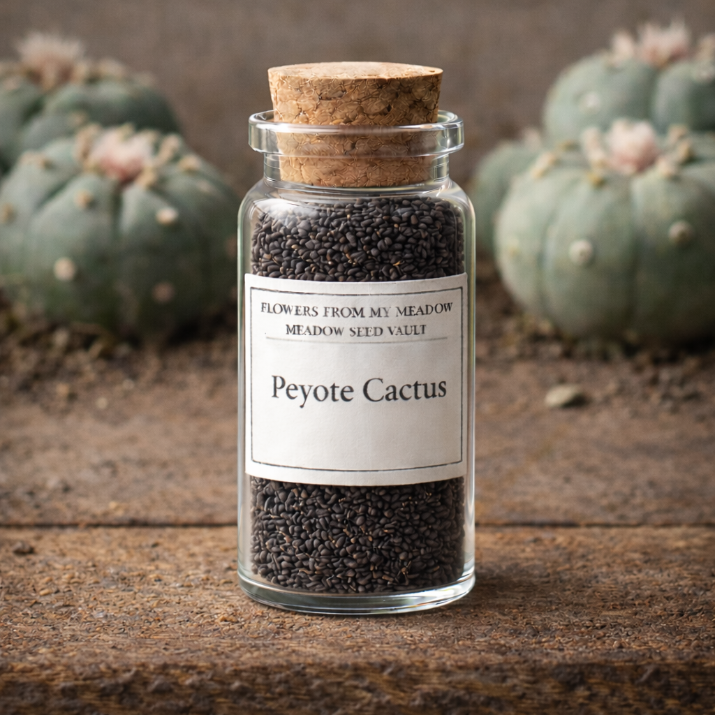 A sacred cactus known for its cultural and spiritual importance. Its soft, button-like form and pink flowers make it a rare collector’s plant.