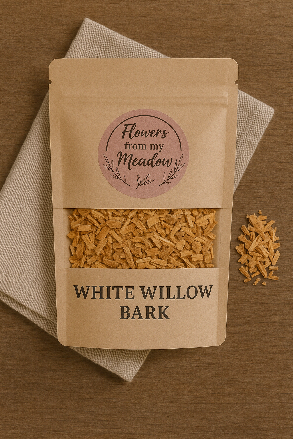 White willow bark (Salix alba) is known as “nature’s aspirin,” traditionally used to relieve pain, lower fever, and reduce inflammation. It contains salicin, a natural compound that the body converts into salicylic acid, making it a gentle herbal alternative for headaches, joint pain, menstrual cramps, and muscular tension.